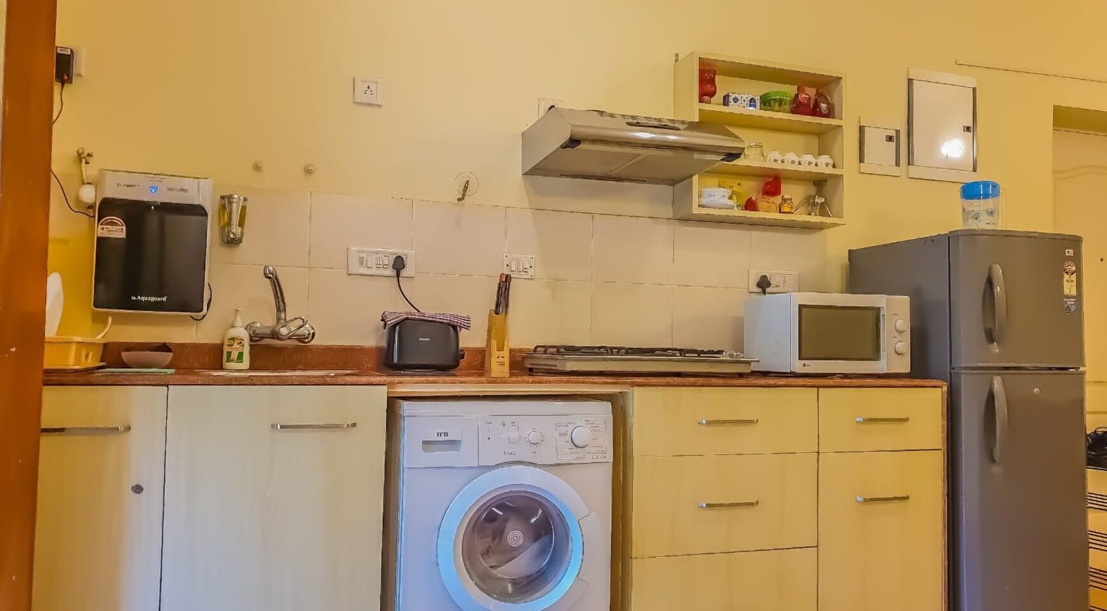This fully furnished 1 BHK apartment in North Goa comes with modern furnishings and appliances including a bed, sofa-bed, wardrobe, modular kitchen, AC units, refrigerator, TV, microwave, washing machine, water purifier, geyser, and fans. The apartment also features vitrified flooring, stylish lighting, curtains, and comfortable seating arrangements, making it an ideal ready-to-move rental property in Goa for professionals or couples.